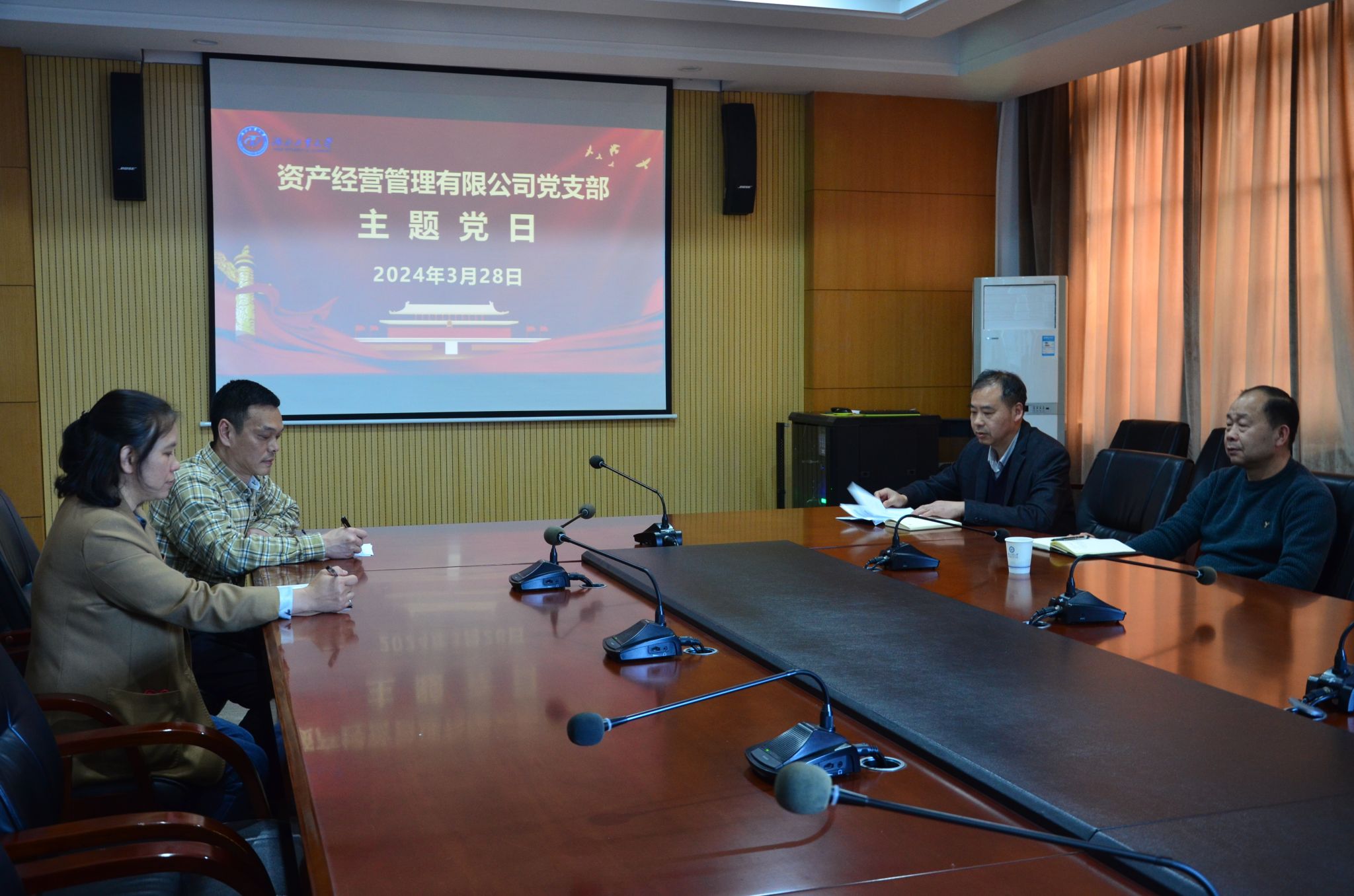 3月28日下午,资产经营公司党支部在行政楼二楼3号会议室开展2024年2-3月支部主题党日活动,活动由公司总经理、党支部书记胡显波主持,支部全体党员参加。